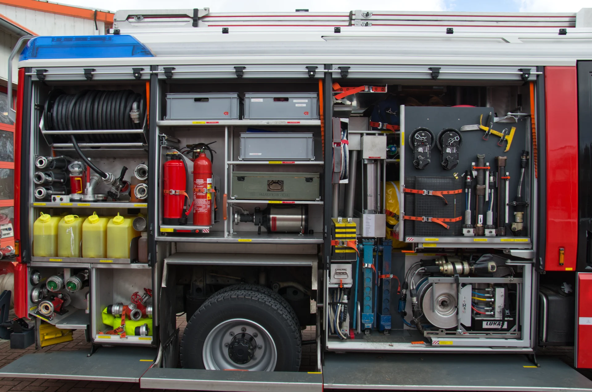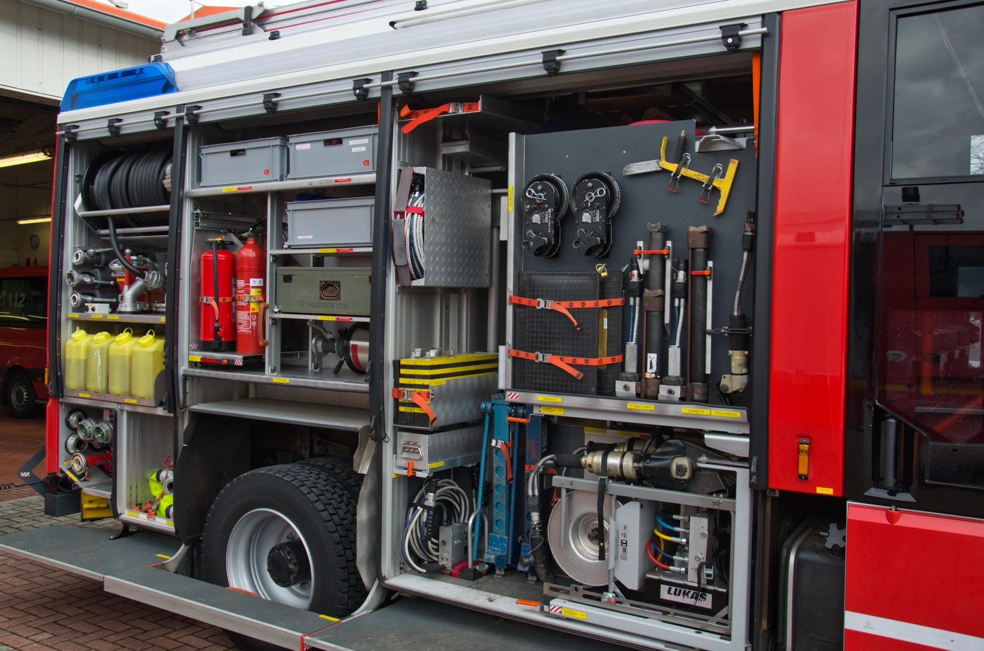 Auch im Bereich der Brandbekämpfung ist das Fahrzeug leistungsstark aufgestellt. Ein integrierter Wassertank mit 2.000 Litern sowie mitgeführte Schaummittel ermöglichen einen schnellen Löschangriff, auch unabhängig von einer externen Wasserversorgung in der Anfangsphase des Einsatzes.