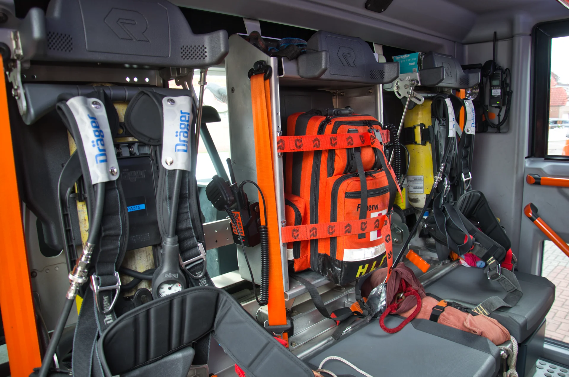 Zur Unterstützung der Atemschutzgeräteträger verfügt das HLF 20 über vier im Mannschaftsraum integrierte Atemschutzgeräte, die bereits während der Anfahrt angelegt werden können. Zusätzlich steht eine Wärmebildkamera zur Verfügung, um beispielsweise Personen in verrauchten Bereichen schneller aufzufinden oder Glutnester gezielt zu erkennen.